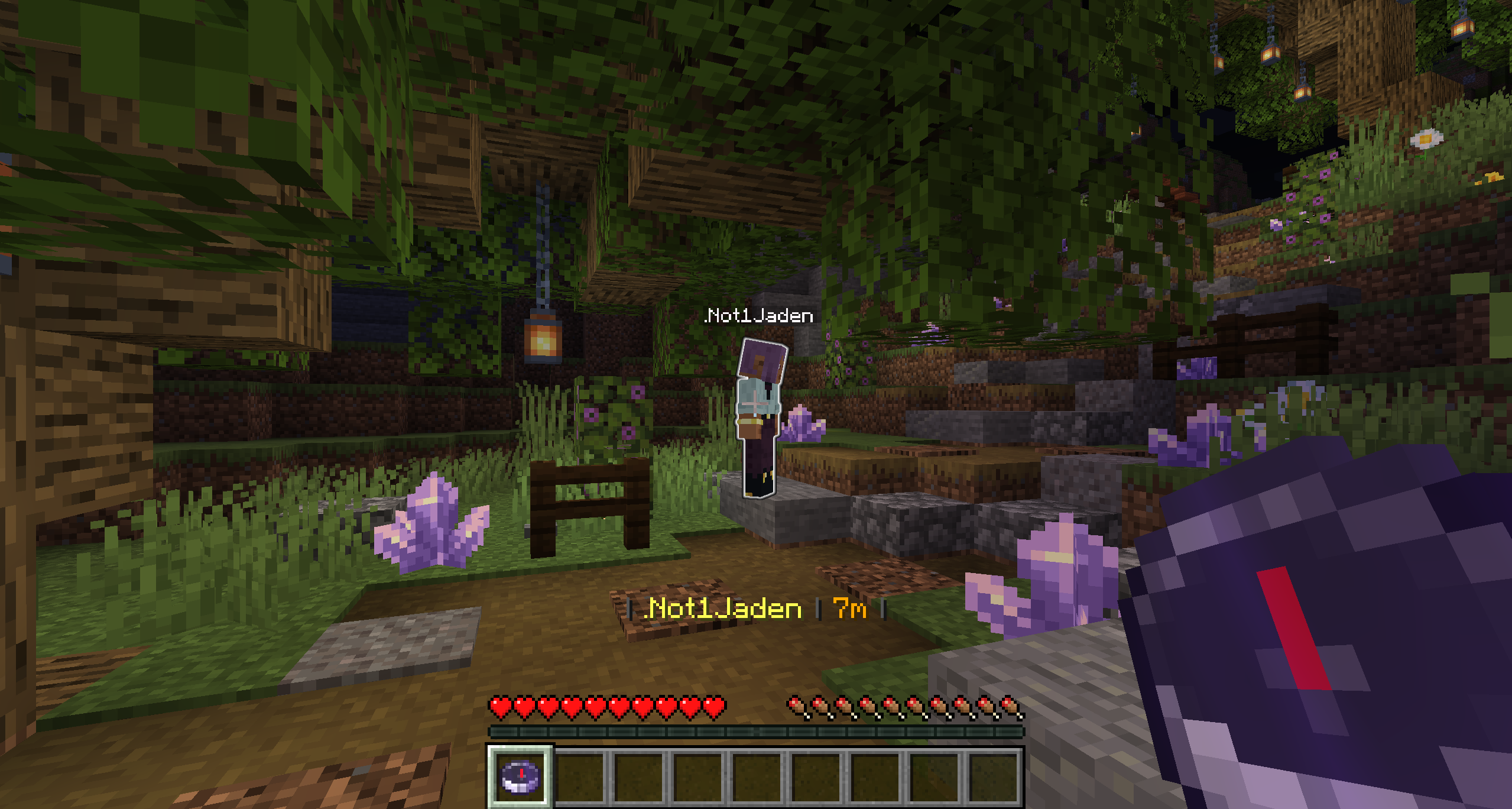 The bounty tracker feature allows players to track players with bounties using a special compass. This compass will show the direction of the player with optional additional information like world, coordinates, or distance.